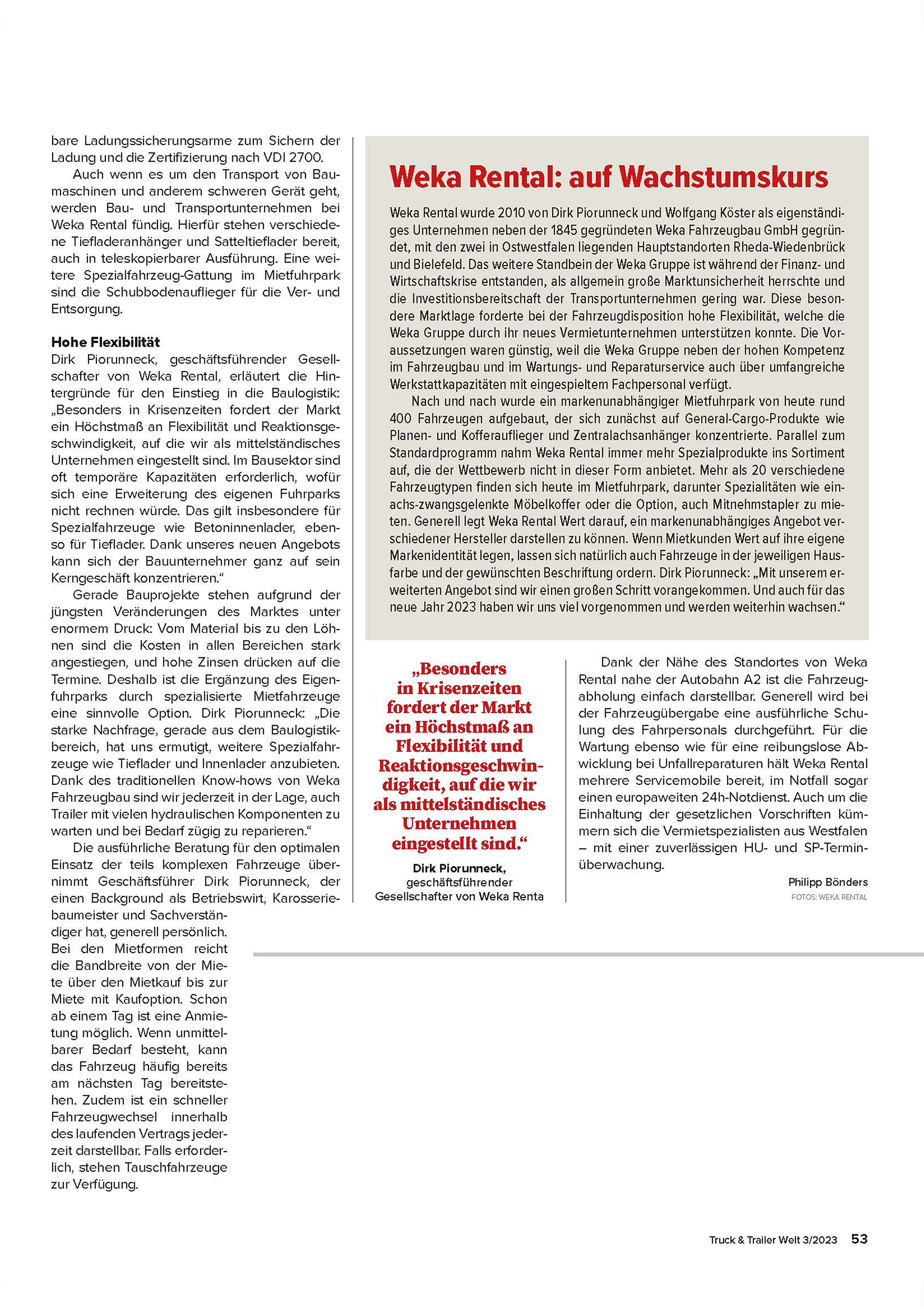 Besonders stolz sind wir darauf, dass wir auch in herausfordernden Zeiten weiter investieren konnten und unseren Mietbestand so aufgebaut haben, dass wir heute in nahezu allen Bereichen der Bau- und Schwerlastlogistik leistungsstark aufgestellt sind.