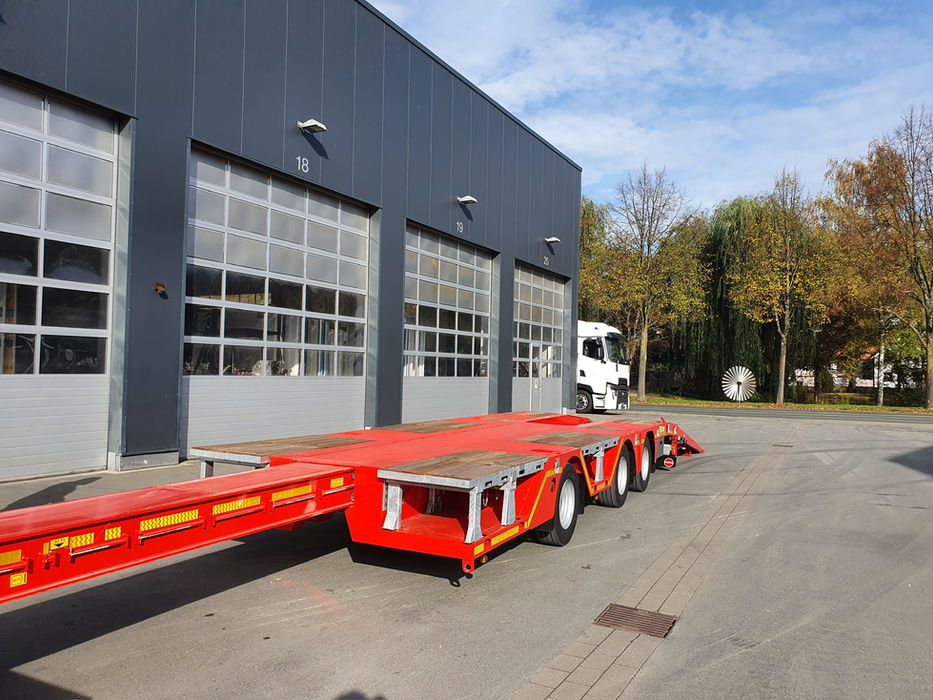 Für Ihren optimalen Auffahrwinkel bei Straßenfertigern oder Walzen stehen unterschiedliche Rampenvarianten zur Verfügung. Die Radmulden sind durch Steckelemente teilbar und ermöglichen dadurch verschiedene Höhen‐ und Ladeoptionen. Die Baggerstielmulde nimmt den Ausleger- oder Stielbereich eines Baggers auf, wodurch die Maschine tief und stabil im Tieflader positioniert werden kann.