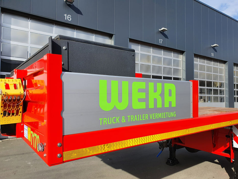 Wie bei allen Fahrzeugen von WEKA Rental profitieren Sie von flexiblen Miet- und Kaufoptionen, schneller Verfügbarkeit und umfassendem Service. Dieser Satteltieflader ist für den Einsatz mit 2- oder 3-achsigen Sattelzugmaschinen ausgelegt und damit ideal für den täglichen Einsatz im Maschinen- und Gerätetransport.